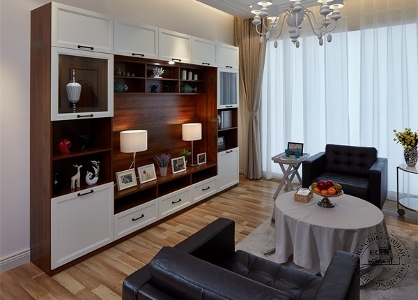 胡桃木簡歐兩室兩廳全屋定制家具效果圖之客廳