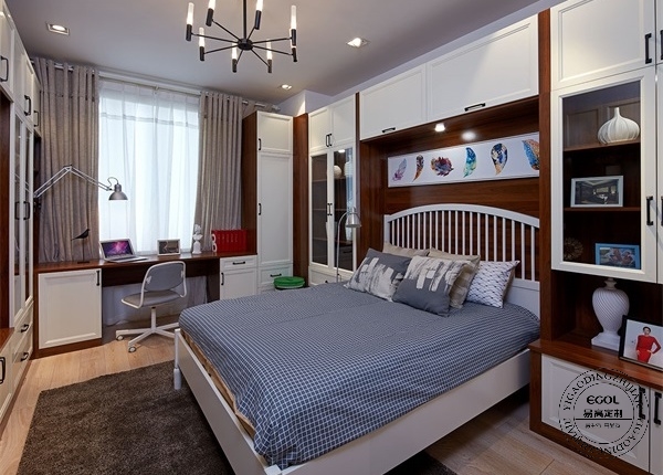 胡桃木簡歐兩室兩廳全屋定制家具效果圖之臥室
