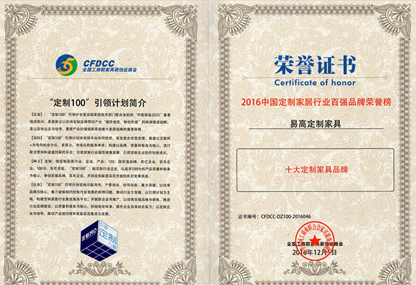 好的品牌不僅受消費者認可,在行業中也是極受關注的青睞的。各大主流新聞媒體如騰訊家居、鳳凰網、新浪網等都多次對易高大事件深度報道。同時在近幾年的全屋定制/定制家具十大品牌評比中,易高也名列前茅,多次榮膺十大品牌及消費者喜愛品牌榮譽。