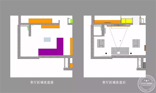 考慮到業主的居住人數及生活方式,且之前裝修格局空間利用率不高;所以設計師重新設計,將各個區域在視覺上形成互相通透。