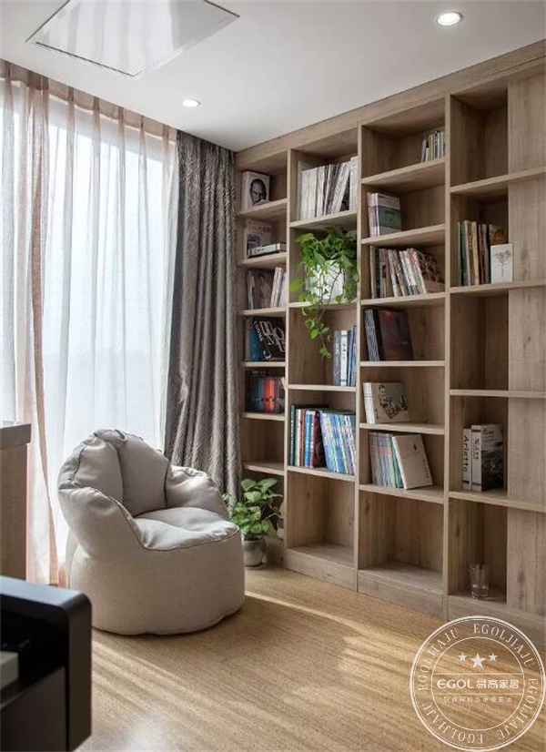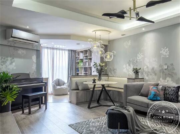 客廳是家里的娛樂休閑中心,家居設計師應業主需求,將客廳面積最大化,方便一家三口在地攤上進行各種娛樂活動;因此,選擇了放棄舒服的貴妃榻和茶幾,裝修效果女主很滿意。