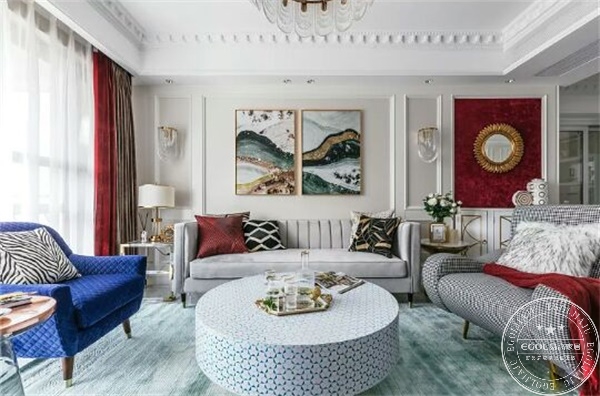 客廳:恰到好處的那一抹紅,點(diǎn)亮了整個(gè)空間。熱烈而動(dòng)感,絲絨、水晶、金屬的質(zhì)感,可以看到真?zhèn)€氛圍都代表了屋主的生活態(tài)度,優(yōu)雅、精致、追求細(xì)節(jié)品質(zhì)。