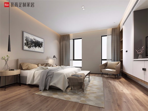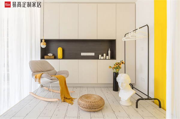 一字型的衣帽架是將整面墻都打造成衣柜,整個設計是呈一字排開的,非常適合小戶型臥室。臥室空間比較小可以打造一個滿墻的儲物空間,如果條件允許還可以嵌入墻里,節省空間。