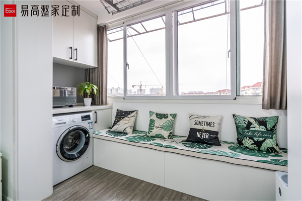 陽臺還可以定制陽臺柜,設計成內嵌式的,可以放置洗衣機或者烘干機,提高了定制柜的利用率,整體空間呀看起來更加整潔和諧。烘干機的安裝也為生活帶來了很多便利。不用擔心天氣不好晾衣服不干,對衣物還有高溫烘干,殺菌消毒的功效。