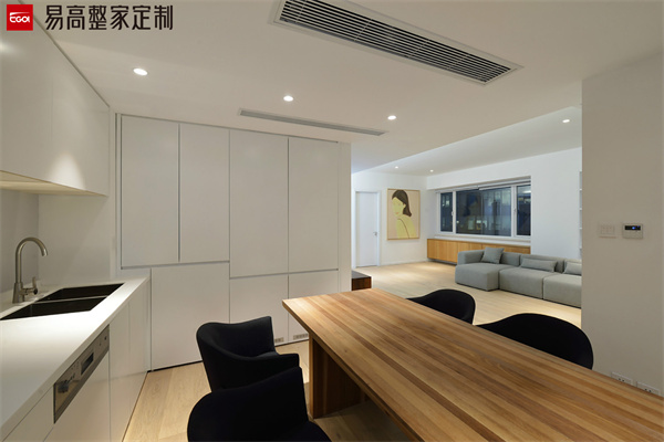 定制櫥柜的設計要以人為本,廚房動線要遵循拿取、清洗、備菜、烹飪等基本操作流程,這樣設計的操作臺使用更加的方便便捷,可以根據空間大小而有所差異化。一字型的廚房櫥柜設計適合小戶型,可以保障基礎活動動線,活動空間比較小需要往返移動。廚房小件物品相對來說比較多,擺放整齊也會顯得比較擁擠,因此在收納方面可以保障一些小物品的收納拿取更加便捷,使用起來也更加舒適,從視覺效果上看也會更加簡潔美觀。從安全的角度也會減少日常的磕碰,使用更加安全。