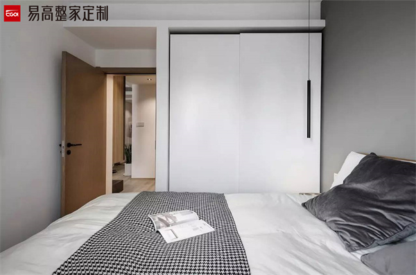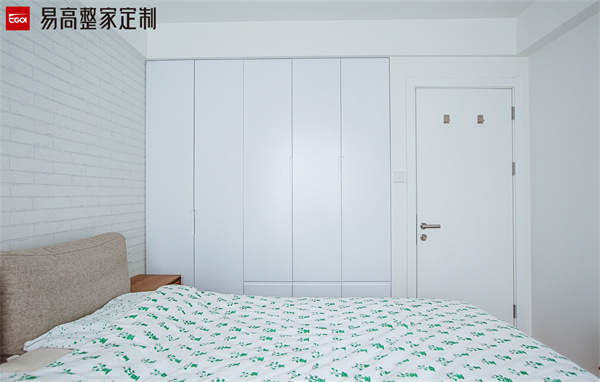 室內空間小,選擇嵌入式的定制柜是一個不錯的選擇,可以減少收納柜的占地面積,而且還將墻面和收納柜結合在一起,整體效果看起來更加舒適美觀,小空間也可以也不會擁擠,在視覺上擴大了空間感。嵌入在墻體里,有種衣柜隱身的感覺。