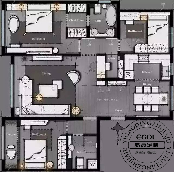 第一眼,季氏風格,相關材料質的搭配和效果都很完整。空間感也十分的規整國際范十足,但細看方案少一個客房功能,有些討巧。好的設計以人為本,先要滿足日常的生活需求,這個并不是做樣板房。滿足不了業主的訴求,也只是飛機稿。