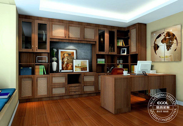 書房家具一般包含書柜定制,書桌,榻榻米等類型的家具,書房的全套定制著重點在家具的布局,書房讓人們比較靜心的工作和學習,實用性是需要注意的,盡量考慮到隱私性。一般設計師會為你想到這一點的,再從顏色方面營造書房的氛圍,這樣就能擁有一個優雅的工作學習環境了。