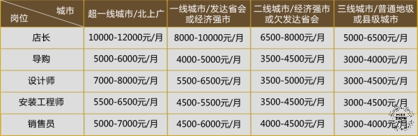 人員配置的變動勢必會影響店面運營成本,那么可以大概來看下不同城市水平下的人員薪酬標準。