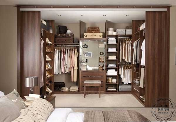 實用性:我們常見的步入式衣帽間都是不帶衣柜門,因為它們所處位置通常是在臥室內部,臥室門阻隔了大多數灰塵,而且大多數衣帽間是U型或者L型,裝上衣柜門打開很不方便